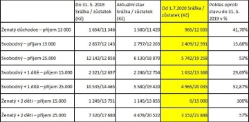 Aktuálně člověku, který má čtyřčlennou rodinu, čistý příjem 25 000 Kč měsíčně a splácí tzv. nepřednostní pohledávky, po odečtení nezabavitelných částek na něho, manželku a dvě děti zůstane z výplaty 20 522 Kč. Od 1. července si přilepší o 1 326 Kč. Důchodci, s přibližně průměrným důchodem ve výši 13 000 Kč, od července zůstane o 615 Kč více. O stejnou částku si polepší také samoživitel s příjmem 25 000 Kč, který se stará o jedno dítě.
