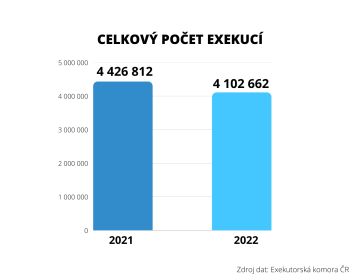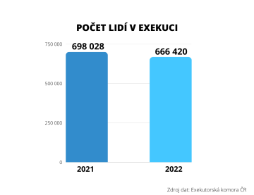 V Česku mělo loni exekuci 666 420 dlužníků, což je o 31 608 méně než v roce 2021. Celkový počet řízení poklesl meziročně o zhruba 324 tisíc a exekutoři tak řešili zhruba 4,1 milionů případů.
