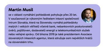 Osobní bankrot umožňuje dlužníkům na Slovensku zbavit se až na výjimky všech dluhů výměnou za prodej jejich majetku. „Většina dlužníků však situaci řeší tím, že žádný majetek nepřizná. Přibližně 97 % oddlužení na Slovensku tak končí s nulovým výnosem,“ upozornil na alarmující situaci u našich sousedů Martin Musil, prezident Asociace slovenských inkasních společností.