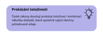 Způsob prokázání totožnosti není centrálně upravený v jednom právním předpise, ale nachází se v různých zákonech. Prokázáním totožnosti se rozumí zjištění jména, příjmení, data narození, rodného čísla a bydliště osoby. Nemusí se tak nutně dít jen předložením občanky. Můžete ji nahradit například i pasem, řidičským průkazem, kartičkou pojištěnce, zbrojním průkazem, průkazkou do knihovny a podobně. Zdali je doklad k tomuto účelu vhodný, závisí vždy na konkrétní situaci a uvážení příslušného oprávněného pracovníka.