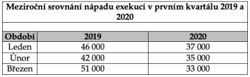V loňském roce bylo zahájeno celkem 506 995 nových exekučních řízení. Oproti poslednímu kvartálu roku 2019 znamenají aktuální čísla pokles o 21 000 nových případů, tedy o více než 16 procent. Ve srovnání s prvním kvartálem 2019 je pak pokles ještě výraznější, neboť dané období bylo podle Exekutorské komory z hlediska počtu nových exekucí nadprůměrné.