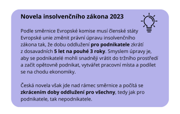 Tříletého „rychloodlužení pro všechny“ se obává také Petra Kolářová, ředitelka České asociace věřitelů. „Už podle stávající úpravy je tříleté oddlužení přístupné, ale pouze seniorům a invalidním důchodcům, a to má své opodstatnění. Pokud ale tuto možnost poskytneme všem dlužníkům, tak se míra uspokojení věřitelů vrátí na úroveň devadesátých let, kdy se dlužníci věřitelům vysmívali a stát neměl funkční systém, jak je přimět k úhradě,“ uvedla pro server Češi v právu.