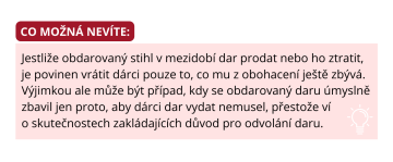 - První případ představuje takzvané odvolání daru pro nouzi,