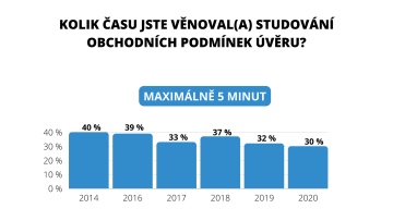 Oproti loňsku si polepšila nejmladší generace lidí do 26 let. Zatímco minulý rok věnovalo podmínkám úvěru maximálně 5 minut času 43 procent z nich, letos je to 30 procent.
